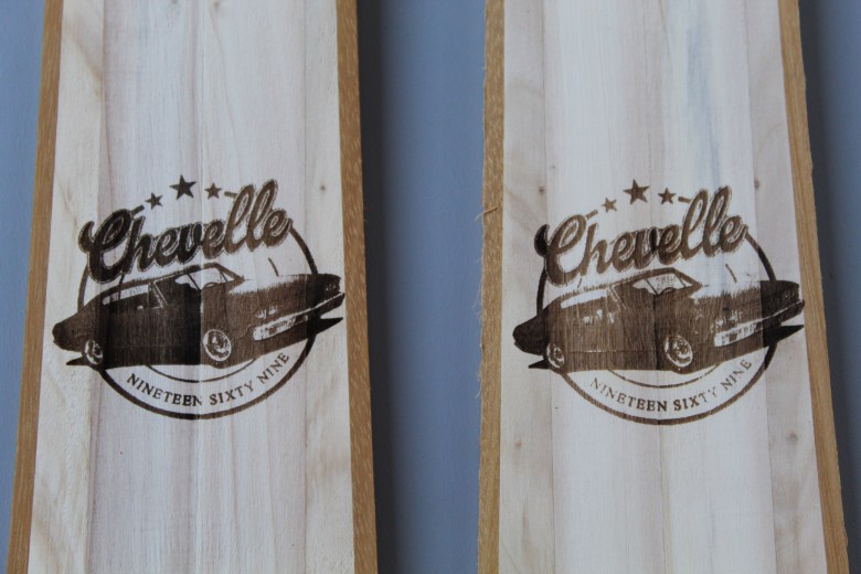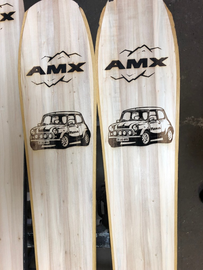 Les skis sont gravés sur le noyau bois à l’aide d’une graveuse laser.